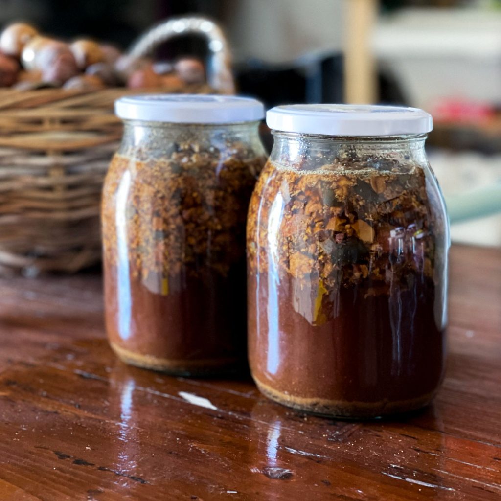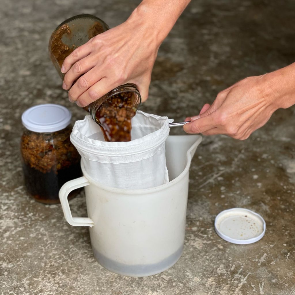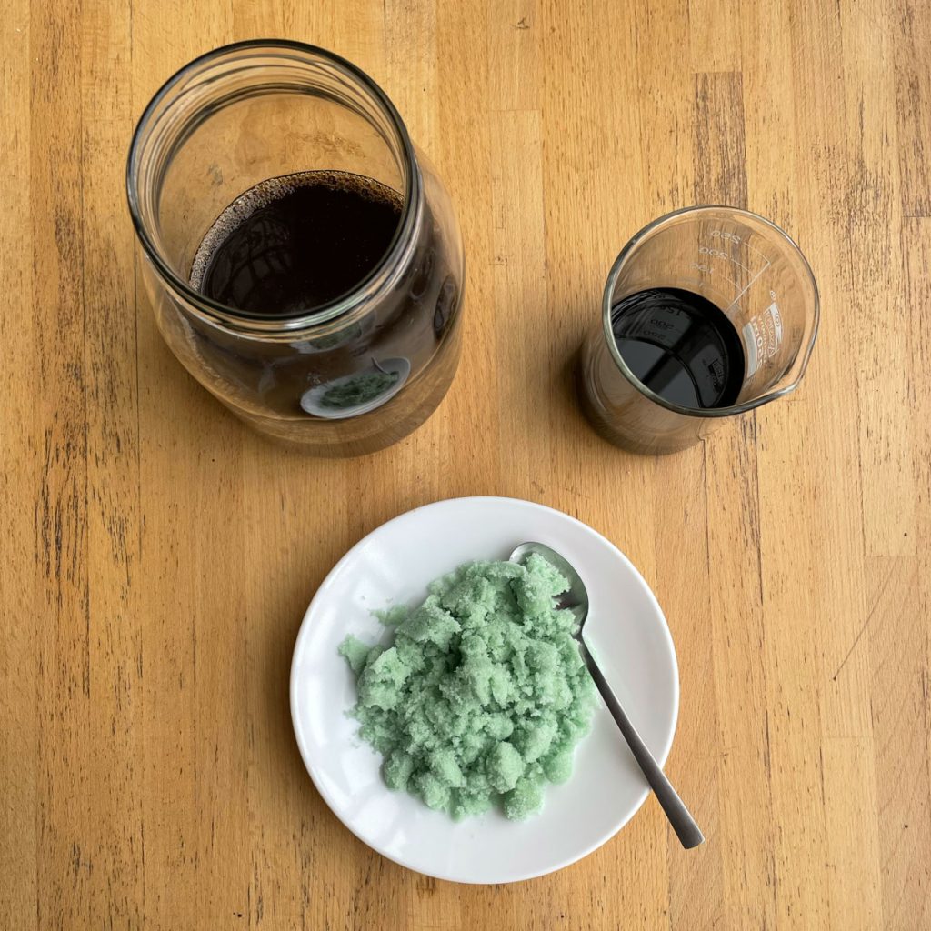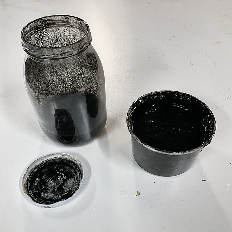 To make the ink, the galls are pulverised and subsequently, over a couple of days infused in rainwater. Gradually tannic acid is leached out of the oak galls while the water slowly turns into a brown liquid. Ferrous sulphate is added which will turn the ink black. When exposed to air it will get even darker and become pitch black. Adding gum arabic will create a treaclier substance which makes it more suitable for writing, drawing and printing. Experimentation also includes extracting pigment from the ink before mixing it with gum arabic