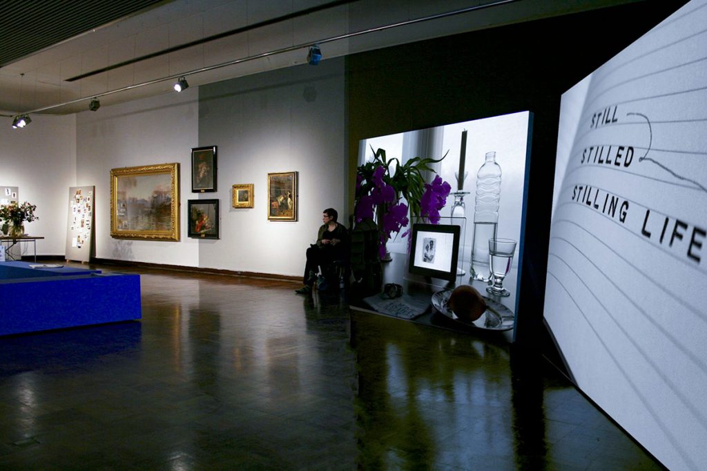 Life is Over! if you want it was created as an environment where a variety of narratives could be released, co-exist and develop. A visual narrative was established through the placement of new slide projections in conjunction with borrowed historical artworks, and new wall drawings. A purpose-designed environment integrated these elements with a public studio where we worked each day, and a series of public events. The exhibition project brought together production, presentation, exchange, research, teaching and reflection by foregrounding collaboration, interaction, curatorial practice, (personal) histories and interpretation.
