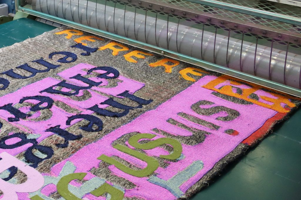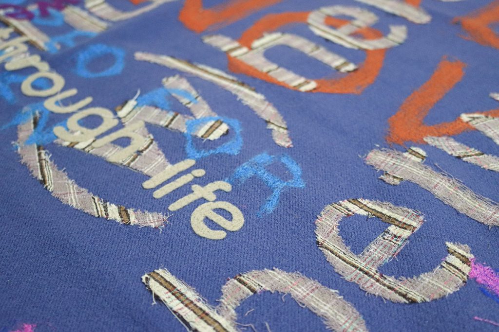 Since the mid 1990s Tracy has been making ‘text blankets’ in bespoke public studios, commissioned by art organisations, and now does so with Edwin in their collaborative practice.