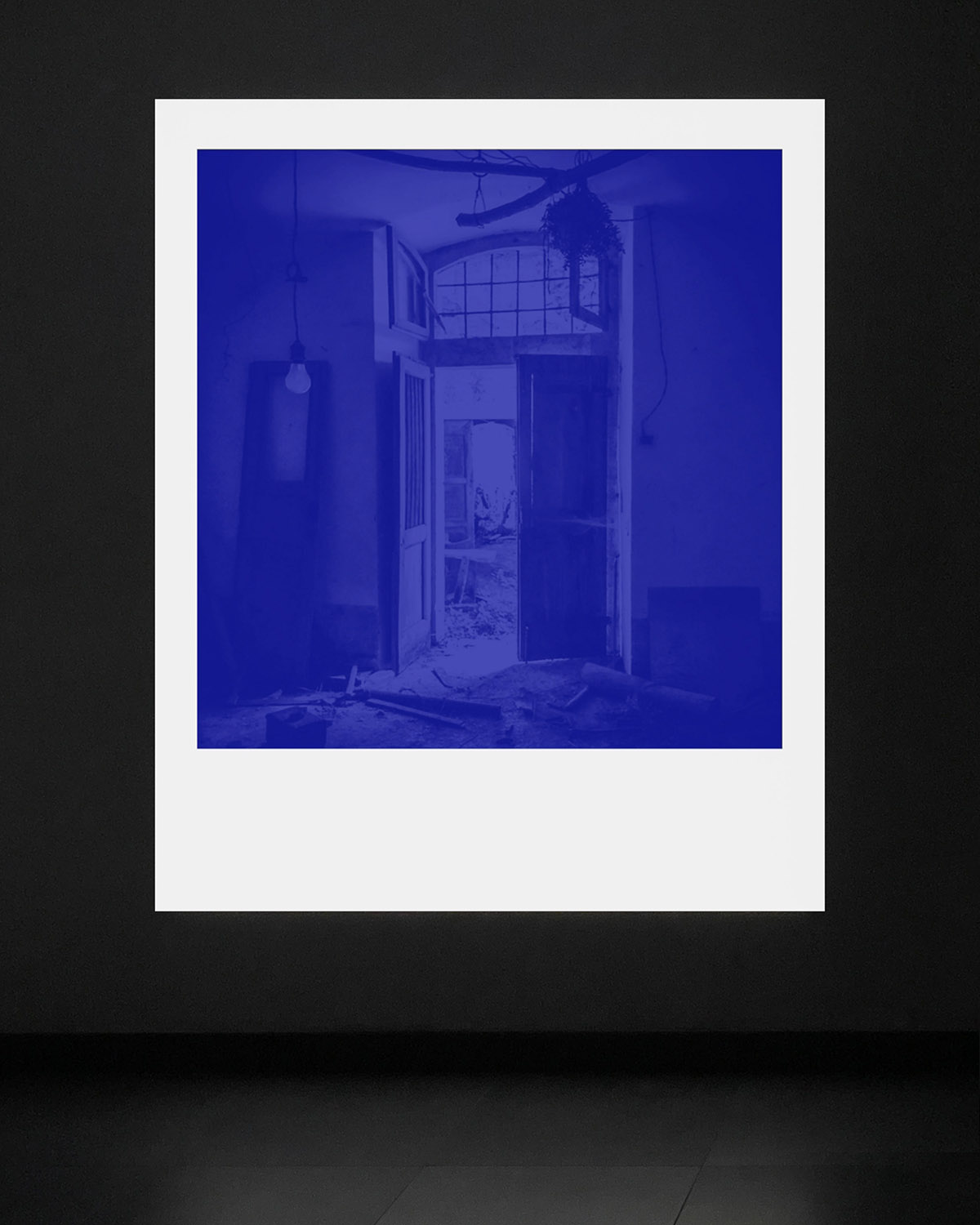 Ten black and white Polaroids slowly emerge from of cobalt blue, each subtitled with the ruin’s lament.